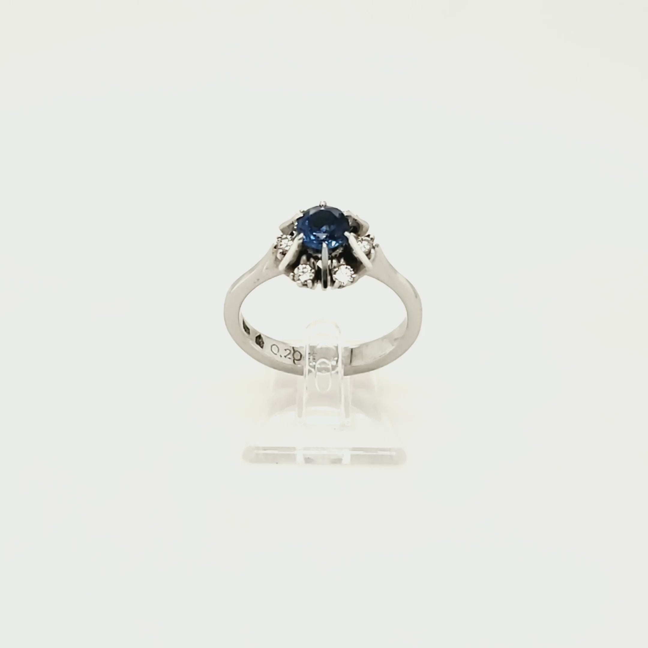 Besatz: 6 Brillanten, zusammen ca. 0,24ct; 1 blauer Farbstein Ø ca. 5,1mm